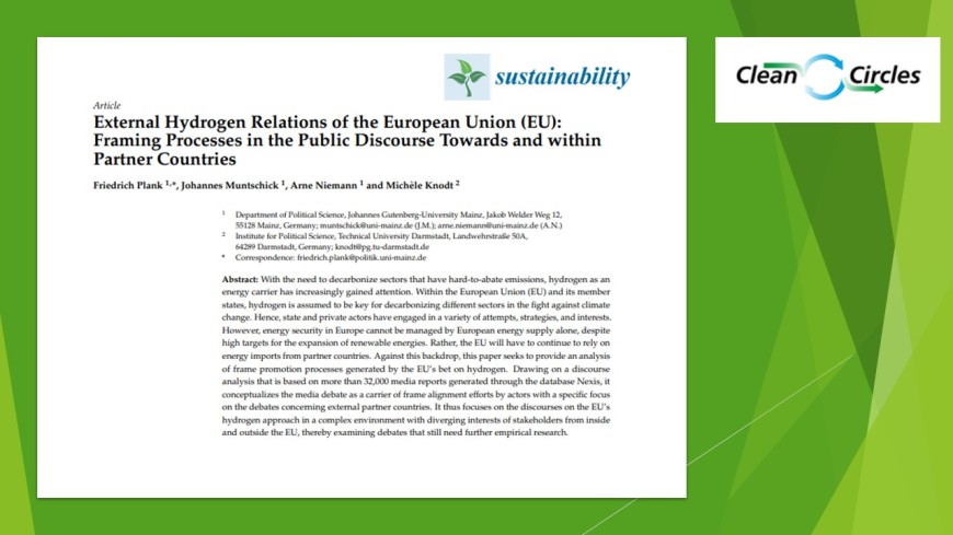 Article in „sustainability“ on External Hydrogen Relations in the EU together with colleagues from Uni Mainz